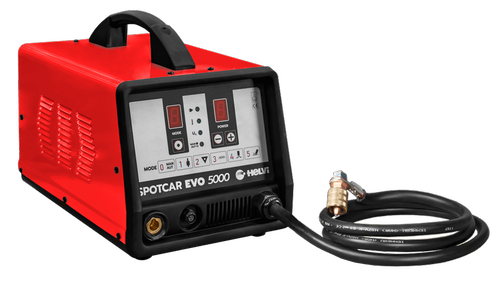 Spotter multifuncion para la reparación de carrocerías. Controlo por microprocesor con programas sinergicos para la soldadura de arandelas, remaches, hilo ondulado, función calienta chapas. Se puede empezar el ciclo de soldadura por contacto o manualmente. Posibilidad de configurar el tiempo de soldadura por puntos automático. Está equipada con pistola, cable de masa y accessorios: martillo extractor, 10 arandelas 3 puntas, cabezal para arandelas 3 puntas y electrodo de carbón.