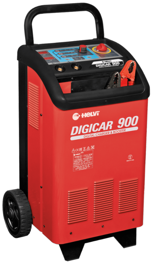 Cargadores de baterías con ayuda puesta en marcha y ruedas. Completos con selector de la corriente de carga y amperímetro. Llevan fusible protector interno contra corto circuito o inversión de polaridad y protección térmica contra arranques repetidos. Equipados con sistema C.P.S. (“car protection system”) que activa y desactiva automáticamente el arranque (boost Start) para proteger las tarjetas electrónicas que se encuentran en los vehículos