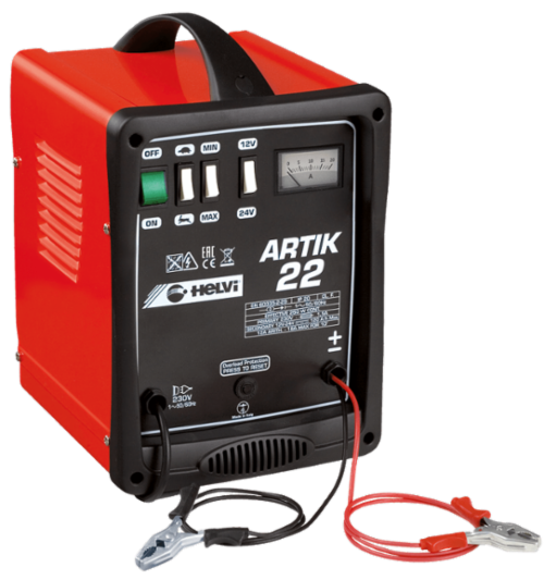 Carica batterie automatici per accumulatori al piombo. Controllo elettronico della corrente di carica, indicazioni luminose per lo stato della carica. Funzione di carica automatica e di mantenimento