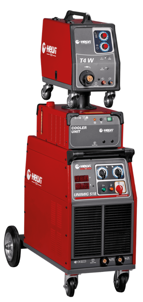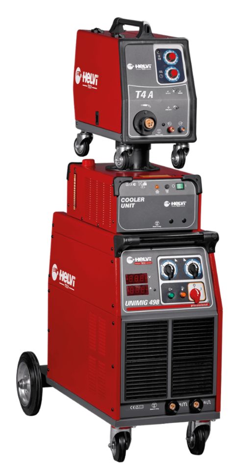 Saldatrici industriali a filo continuo trifase carrellate, corredate di trainafilo separato 4 rulli. Le saldatrici sono corredate di fascio cavi 5m, torcia – attacco euro, riduttore di pressione, tubo gas, pinza e cavo di massa. Sono dotate di timer per la saldatura a punti e di display per la visualizzazione della corrente di saldatura e della tensione d’arco. Dotate di selettore per saldatura manuale (2T) e automatica (4T), regolatore della rampa di partenza e del tempo di post bruciatura. Impianti particolarmente adatti nelle medie carpenterie ed industrie. Il porta bobine consente di utilizzare bobine da 5 a 15 Kg.