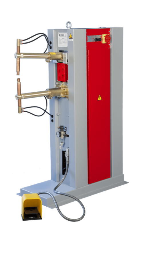 Puntatrici a colonna con comando a pedale. Trasformatore raffreddato ad aria. Bracci regolabili in lunghezza per 320 mm, da un estensione minima di 230mm ad un massimo di 550mm. Porta elettrodi in rame/cromo previsti per montaggio diritto e inclinato. Corsa e pressione degli elettrodi regolabile per raggiungere la massima cadenza di lavoro con il minimo sforzo. Controllo della saldatura a tiristori comandati da microprocessore.